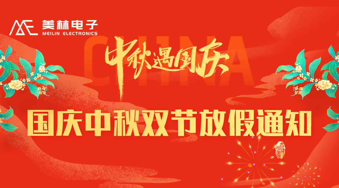 尊敬的各位客戶、各合作伙伴: 團(tuán)圓慶華誕,雙節(jié)共歡騰。國慶中秋雙節(jié)將至,根據(jù)國家有關(guān)規(guī)定結(jié)合公司實(shí)際,放假安排如下:10月1日至10月8日放假休息,共8天,10月9日(星期四)正常上班。 感謝您一如既往的信任和支持。美林電子祝您財(cái)源廣進(jìn),團(tuán)圓喜樂,闔家幸福,萬事如意!